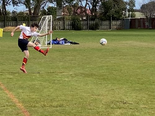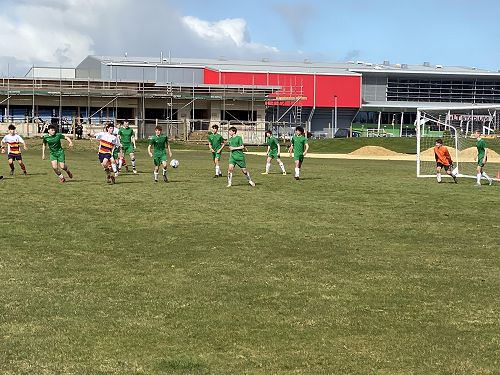 The semi-final draw saw us playing against James Hargest College in the first semi-final on the turf. We scored an early goal and were ahead for most of the game until a late equaliser forced a short extra time, but the inevitable penalty shootout ensued. Confidence in Mason Prentice, our goal keeper, was high as he had previously saved two penalties that were awarded against the lads in pool play and earlier in the match. Time after time, our boys stepped up to the penalty shot full of confidence in their own ability to bulge the onion sack behind the opposing goalkeeper. John McGlashan College won the penalty shootout 4-2. Mason Prentice easily saved two of the James Hargest penalty attempts.