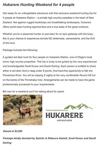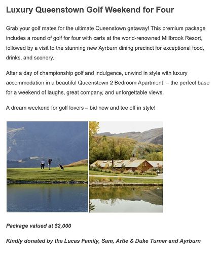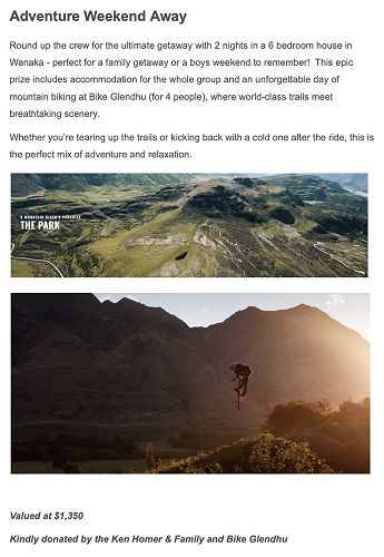 There will also be 11 incredible Live Auction items up for grabs at our Sports Dinner this evening (see attached below) - all generously donated by supporters who believe in the value of sport at McGlashan. If you can't make it tonight, no problem! You can still be part of the action by placing a pre-bid. Email tony.gomez@mcglashan.school.nz if you’d like to place a bid and we’ll take care of it for you on the night.