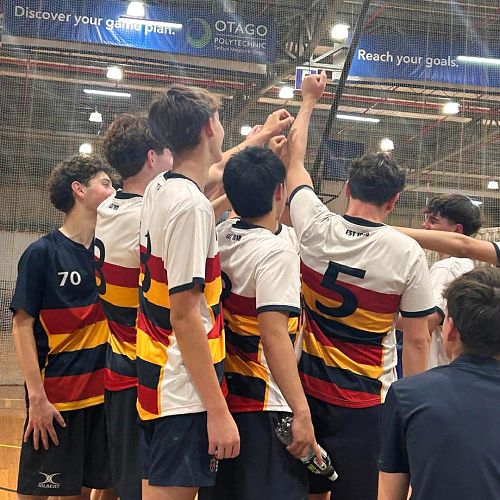 The tournament began strongly with a comfortable straight-sets win over Cromwell College. A tougher challenge followed against Otago Boys’ High School, with the match going to five sets. In a composed and determined performance, the boys secured the decider 15–10. A further win over Bayfield High School saw the team finish top of their pool.
