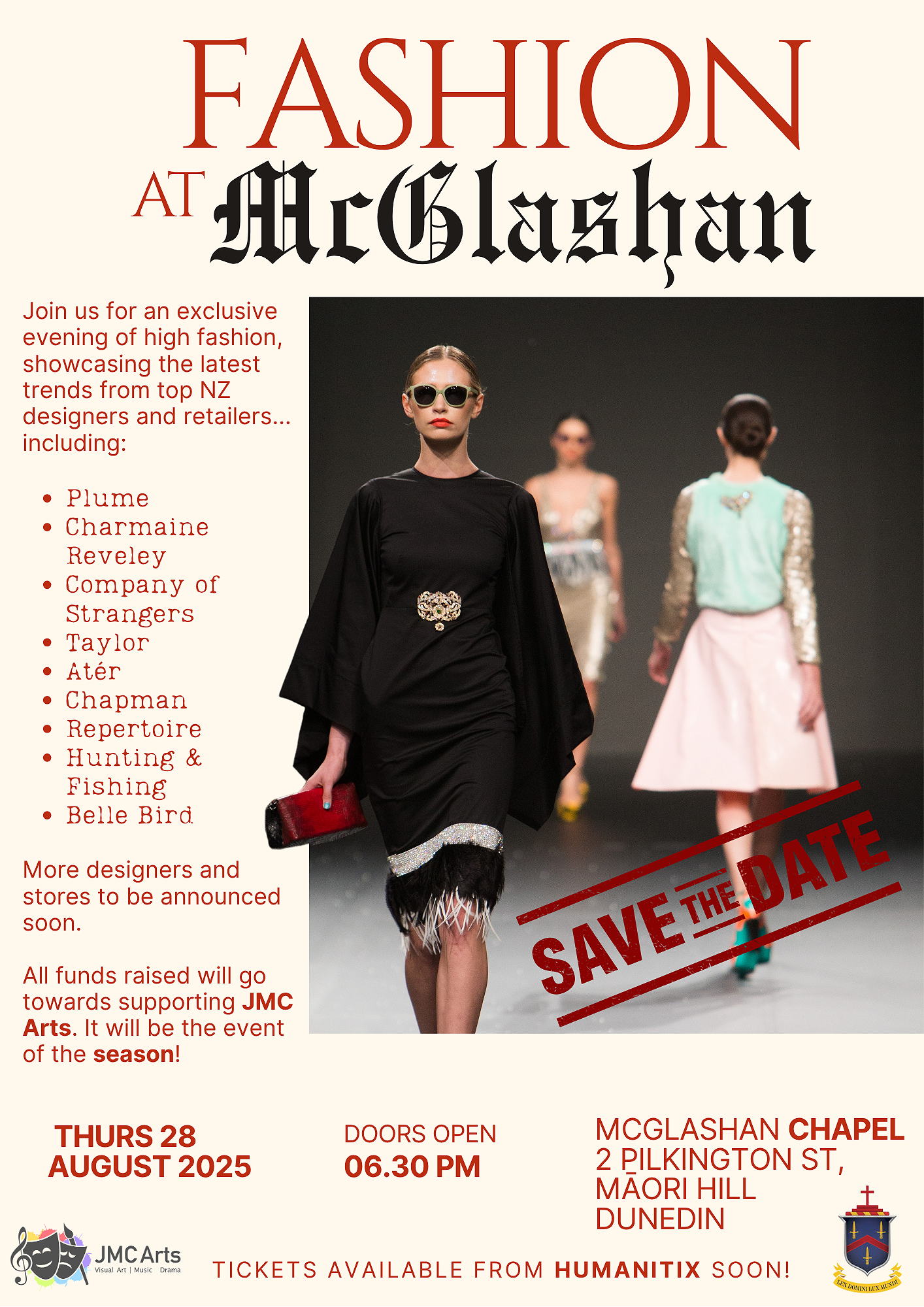 Held in the stunning John McGlashan Chapel, this exclusive night will showcase the latest trends from some of New Zealand’s top fashion designers and retailers, including: