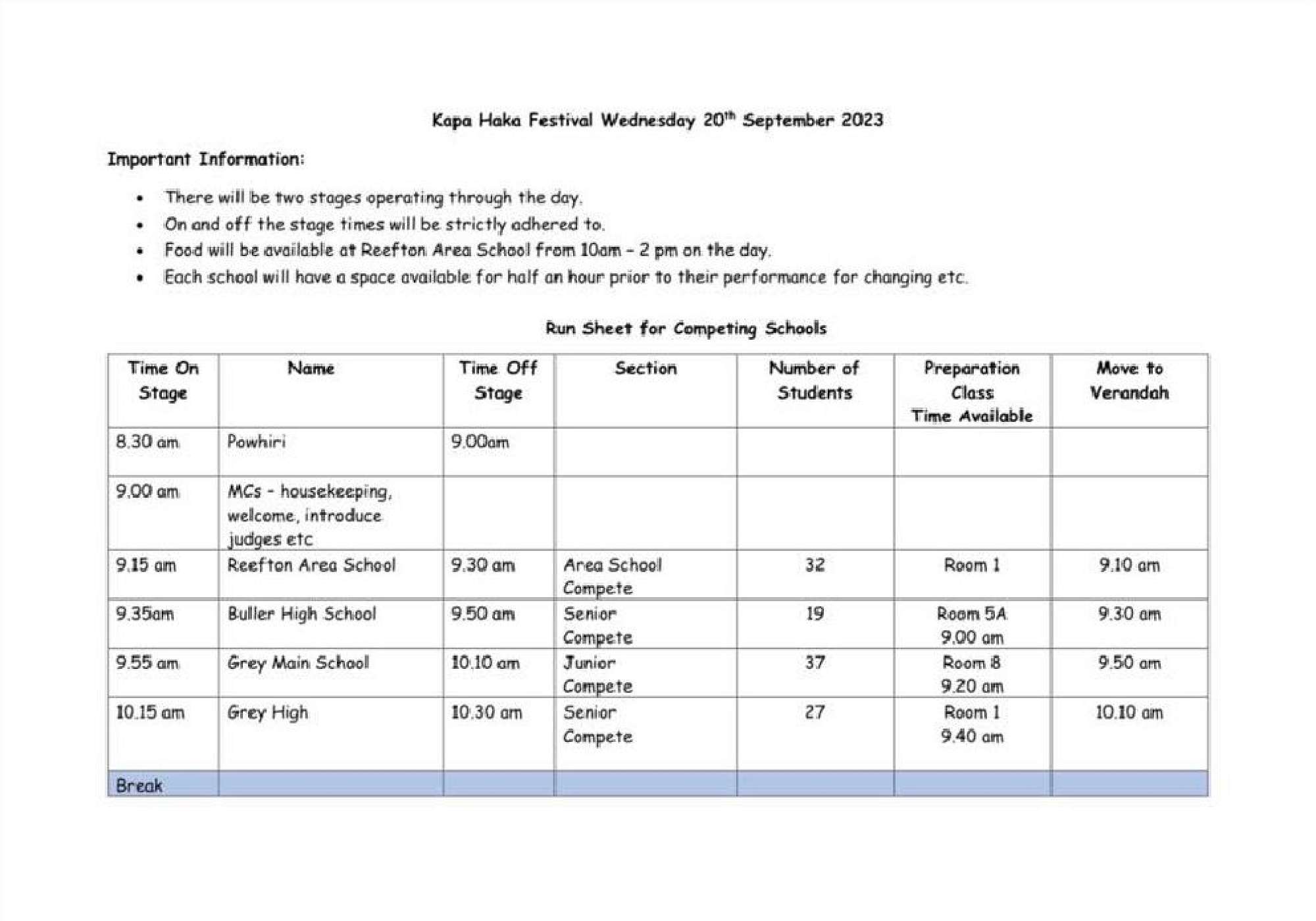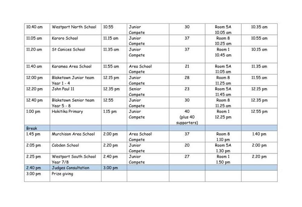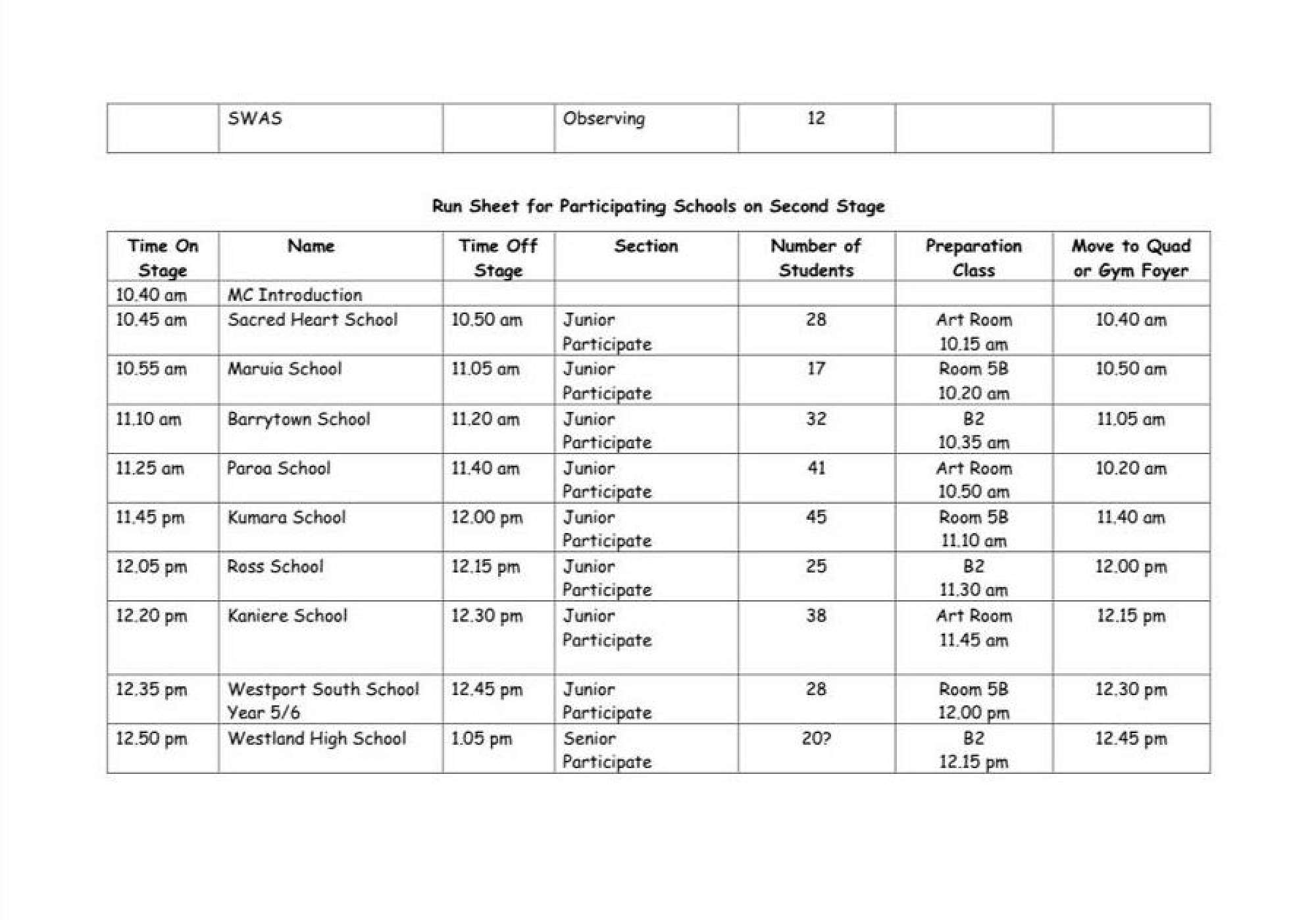 JPII is performing from 12.20pm to 12.35pm in the Senior Competitive section (Buller HS and Grey High are in this section).