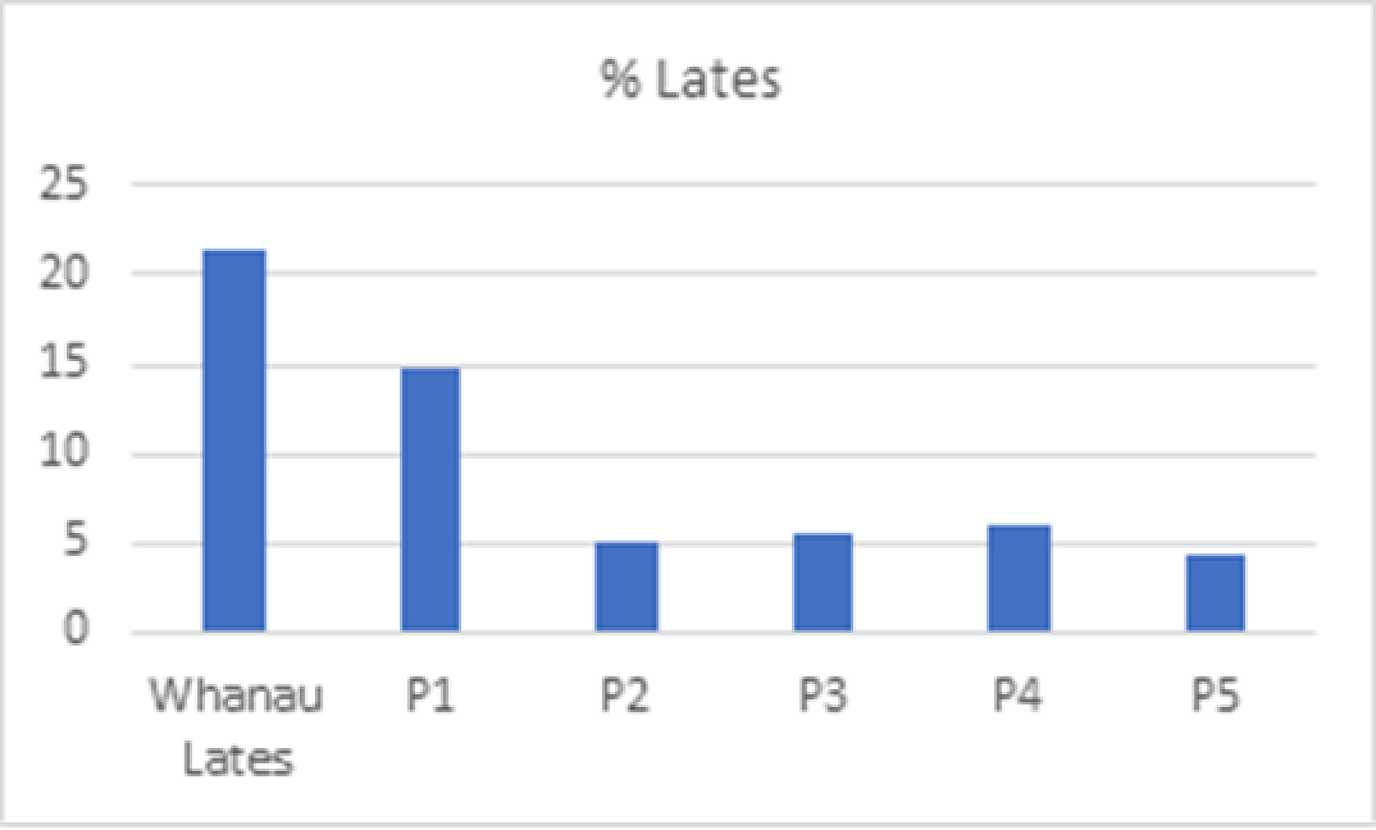 When evaluating last year’s attendance data, it was evident that most lates occurred in the morning during Whānau time and into P1. Students were coming into school late as they believed that ‘there was no point” coming to school for Whānau time.