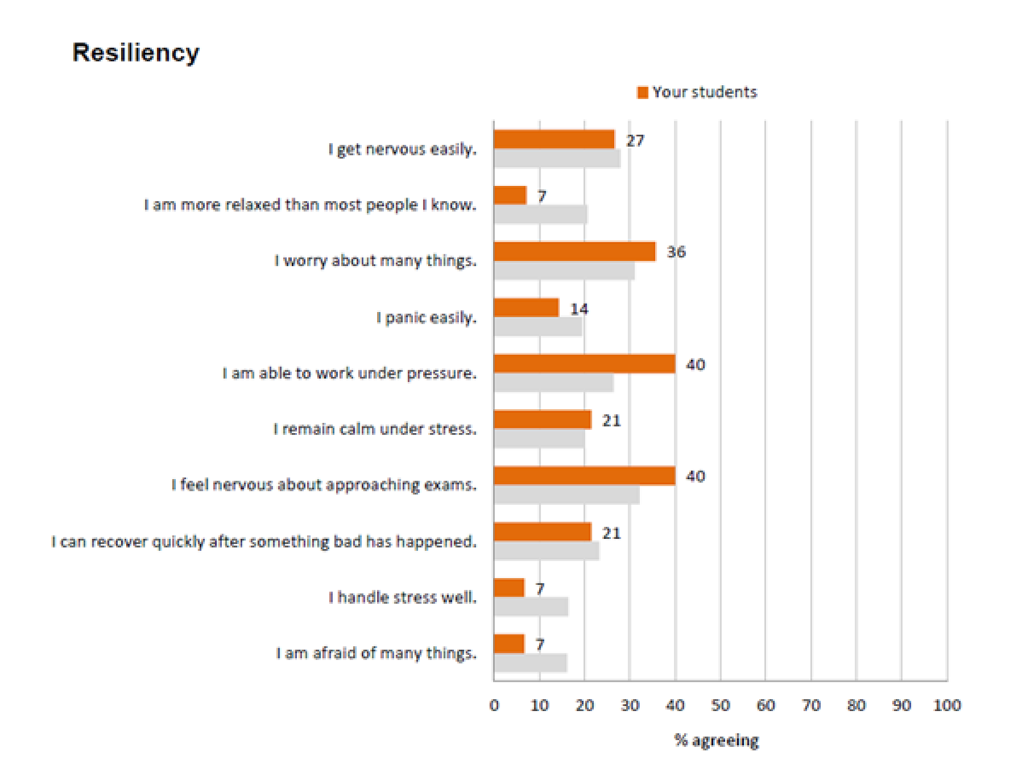 Our students are clearly worrying about things more than the national average, feel nervous about exams, and feel they don’t handle stress well.