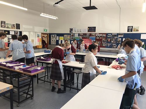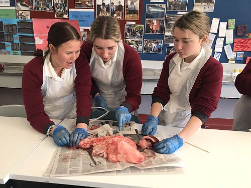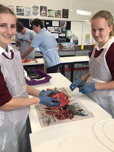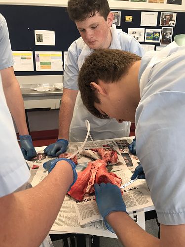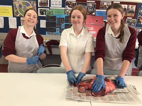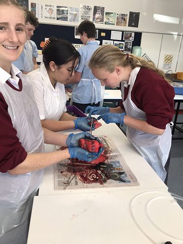Last week the year 12 Biology students dissected plucks – hearts and lungs of sheep. This was so students could examine the structure and function of the gas exchange and circulatory system of animals. The learning activity was needed for their internal assessment on animal gas exchange and support and movement adaptations. The students were able to see the structure of the blood vessels and organs, and respiratory tubes in the lungs and trachea, and the pathway that blood travels to collect oxygen from the lungs. It was a great opportunity to fully understand how body structures work, and students participated fully. The plucks were supplied by Westland Processors Limited and they were perfect for the activity, we are so grateful to have had this learning opportunity.
