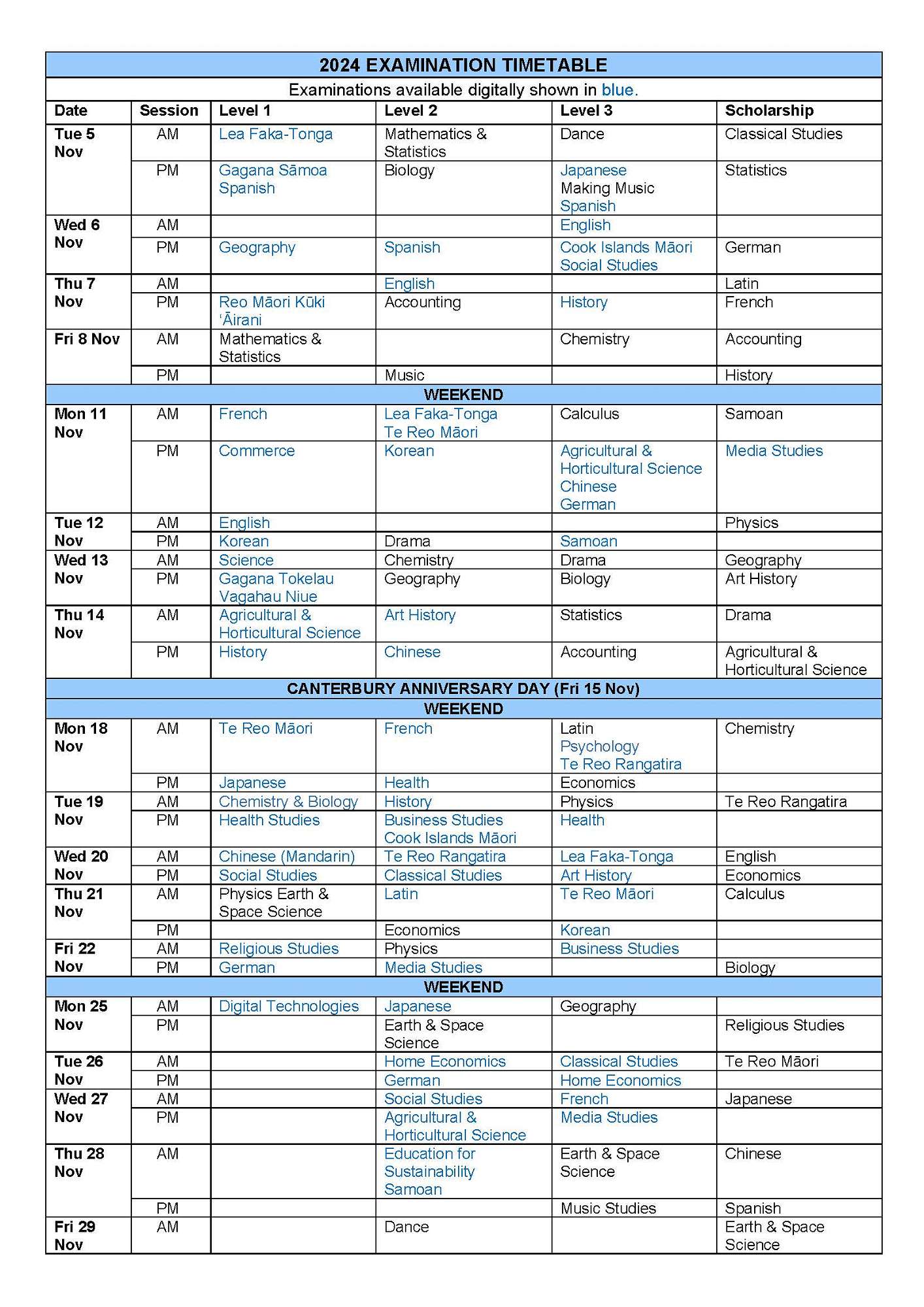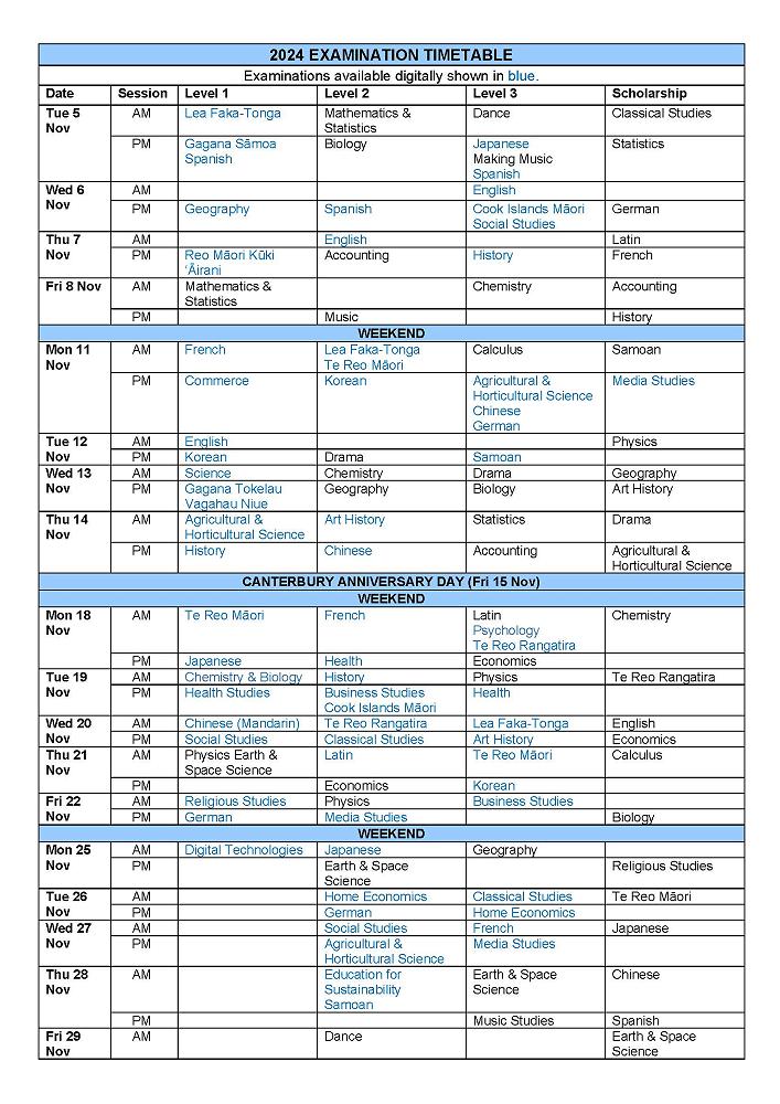 NCEA exams start on Tuesday 5th November and finish on Friday 29th November