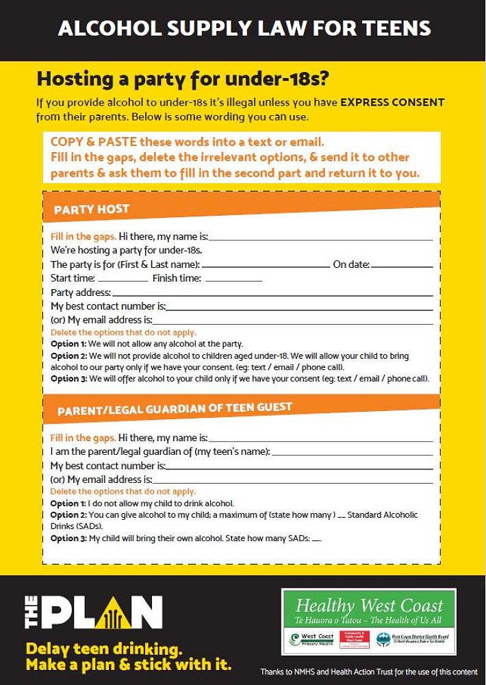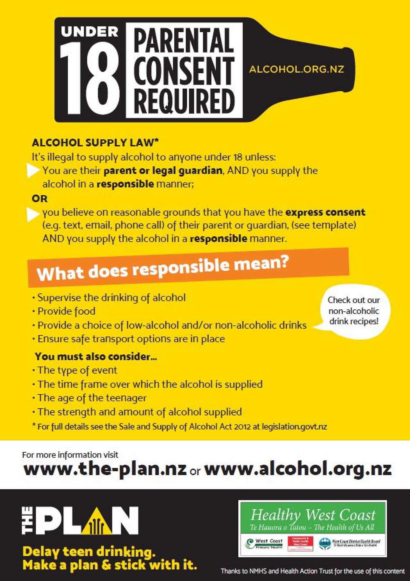 - Ensure there is safe transport options for the young people to get home. Remember that drivers under the age of 20 are not allowed to consume any alcohol.