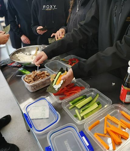 Mrs McMillan showed students how to prepare sushi this week, which the students eagerly sampled.