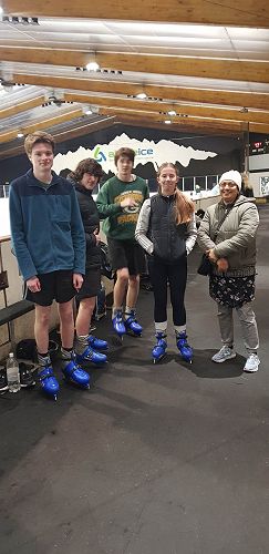 The Year 12 Physics Trip was certainly one to remember. Once we arrived in Christchurch, we went straight to Alpine Ice and gave the Rutherford Den a miss since we were short on time. After hiring our ice skates, we had a 20 minute introductory lesson to skating where we covered moving forward, backward, one- and two-feet gliding, and stopping. Then we joined the rest of the ice skaters in the rink. The physics concepts behind ice skating were friction, momentum, rotational velocity and balance. There is a low level of friction between the skate and the ice. This low friction is what allows skaters to go fast. However, because of this low level of friction, the skater must apply a force perpendicular to the blade in order to move forward. We moved forward by turning our feet out to apply this perpendicular force. To help our balance when we first began skating, we spread our arms out either side of us. This spread-eagled position improves our balance by distributing the mass of our bodies more evenly. It is also distributed further away from the pivot point (our feet/skate) which helps with balance.