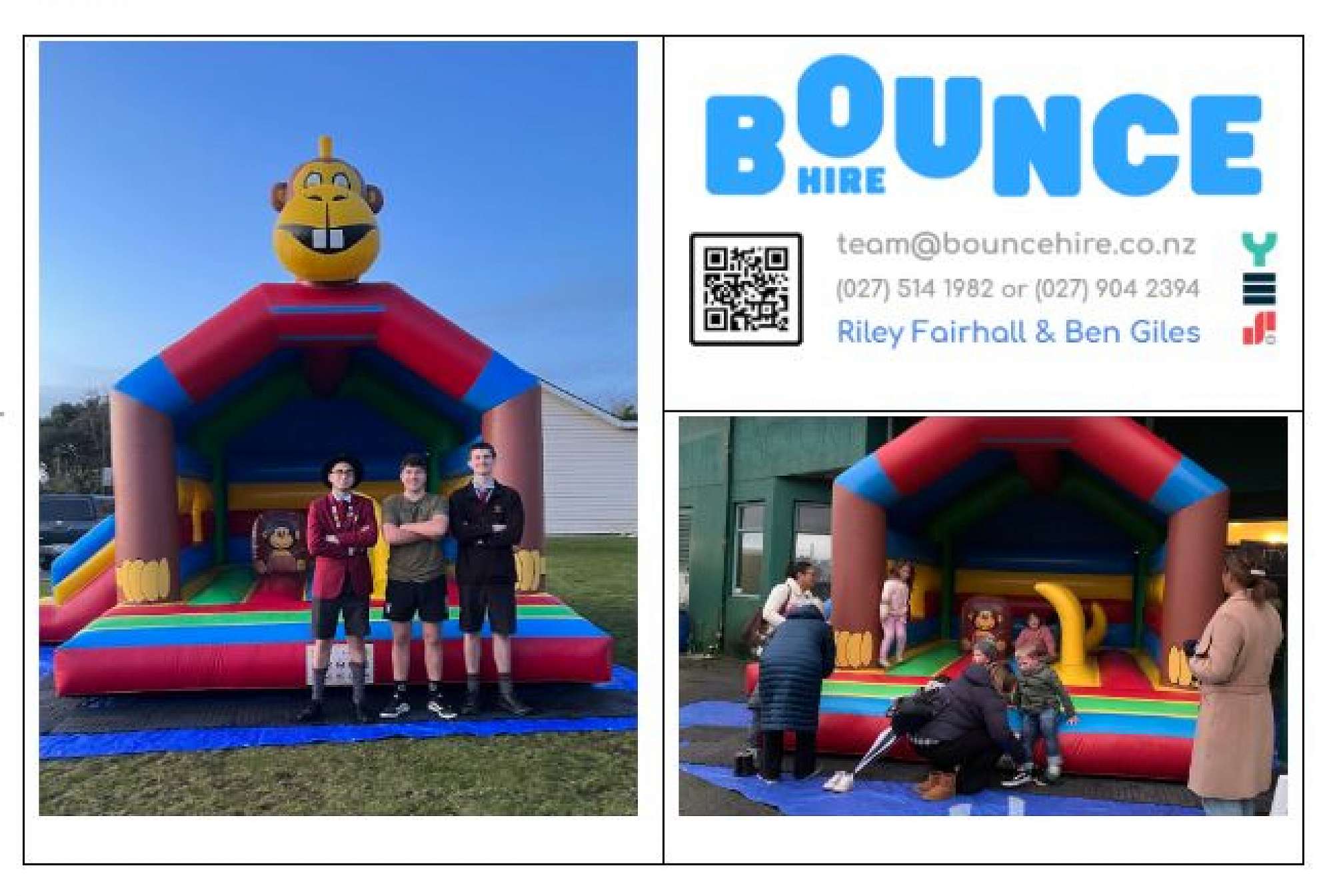 Year 13 students Riley Fairhall and Benjamin Giles, very ably assisted by Daniel Cresswell, have been working hard in their business studies class, establishing their first real-life business, “Bounce Hire”. They have partnered with the Lions Club of Hokitika Trust who have funded their first bouncy castle, giving them exclusive rights to use the castle in their hire business, in exchange for their support at Lions Club of Hokitika organised events, running the bouncy castle.