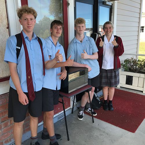 Student microwave available break times only, located by the deputy principal's office.