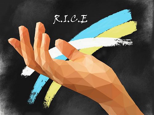 "I chose to do this design for my mural to symbolise how we're constantly grabbing new ideas and new techniques while learning. While I chose to draw the hand in the polygon typestyle and add the school colours in the background along with text stating “RICE” above, standing for our school values."
