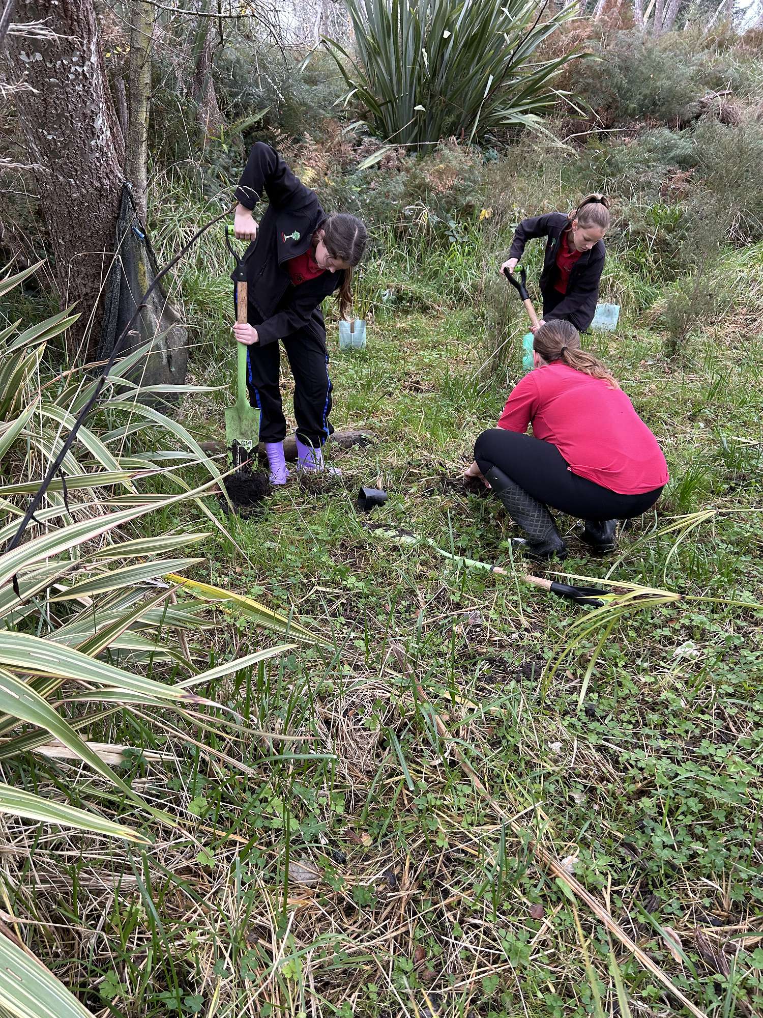 The Enviro Group is run every second Tuesday morning for a small group of senior students. They visit our school biota node at Pines beach, which is part of the Tuhaitara Coastal Park Trust. The students plant, monitor pests, trap and learn about ecosystems. They are very lucky to have Kowaro in the pond, which they monitor.
