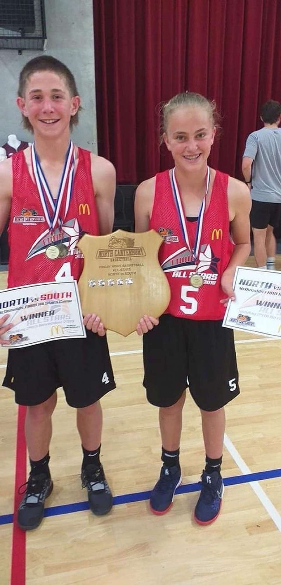 We are very proud of Aaliyah Newton and Max Dunbar who were selected as part of the South team in the North Canterbury Basketball All Stars game on Sunday. Not only did they both contribute greatly but their South team won the game and Max was named MVP for the match - ka pai Max!