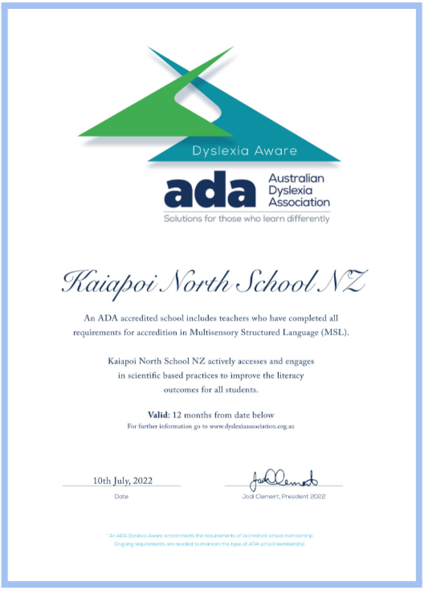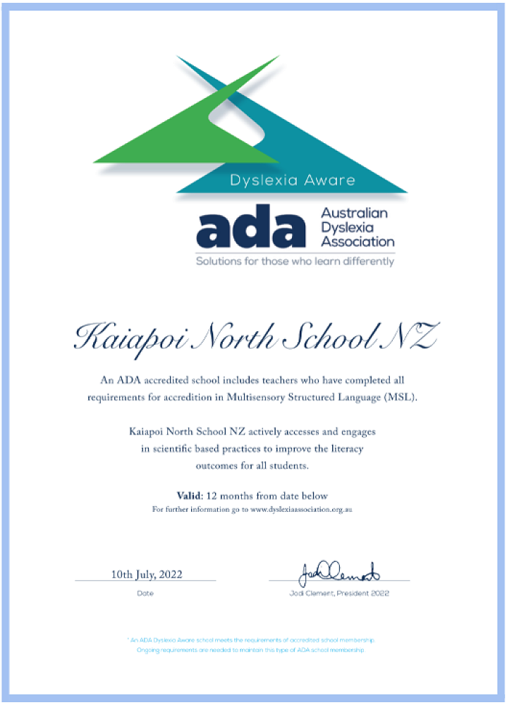Over the last four years, we have had eight staff trained in Multi-Sensory Structured Literacy, and we are now an accredited school. MSL and Structured Literacy are based on the same principles of instruction required for effective reading instruction.
