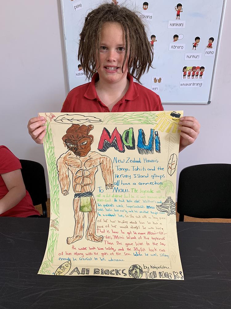 Our Year 5-8 children had the opportunity to participate in our Akoranga programme which allows for cultural immersion sessions. This time the focus was on myths and legends within NZ and across the world. Our students shared their learning last week and the results were impressive! Well done to all the children involved and thank you to our teachers Mrs Coleman and Mrs Osgood, and to parents for your support for this important opportunity!