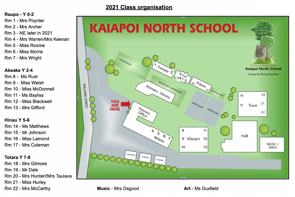 On Monday you will have received a letter with details about the beginning of the 2021 school year and notification of your child’s home class and teacher. Please be aware that there has been a detailed and sustained process into making class placements for our children. For Year 2-8 students your child will have a core teacher but will also be working in a Flexible Learning Space (FLS) with other children and teachers. I encourage you to take the time to visit your child’s class and learning area early in 2021 to familiarise yourself with the classroom spaces. We will have a meet the teacher opportunity on Wednesday 3rd February. Below is a map of the school to give you information about where teachers are located and where classes will be located in 2021.