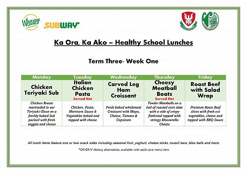 As mentioned in our previous newsletter our new Ka ora, Ka ako/Healthy lunches provider, Subway (Weaver Food Group) will be starting in Term 3. Dan and the team at Subway are very excited to be coming onboard with us here at Kamo High School, as are we.