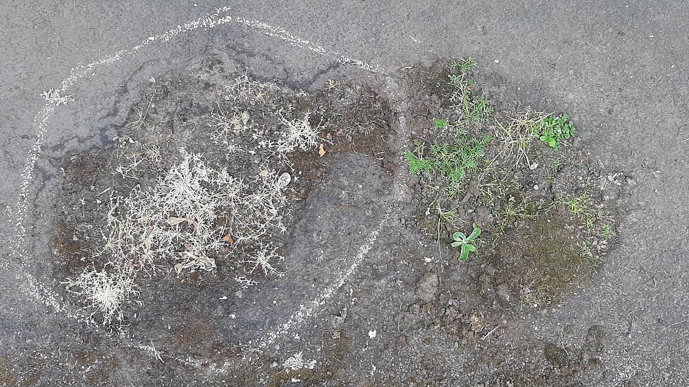 The students sprayed the two plots once and have been monitoring the results every week. Early results so far show that the acetic acid worked very quickly as can be seen in the photos, which are spaced one week apart.