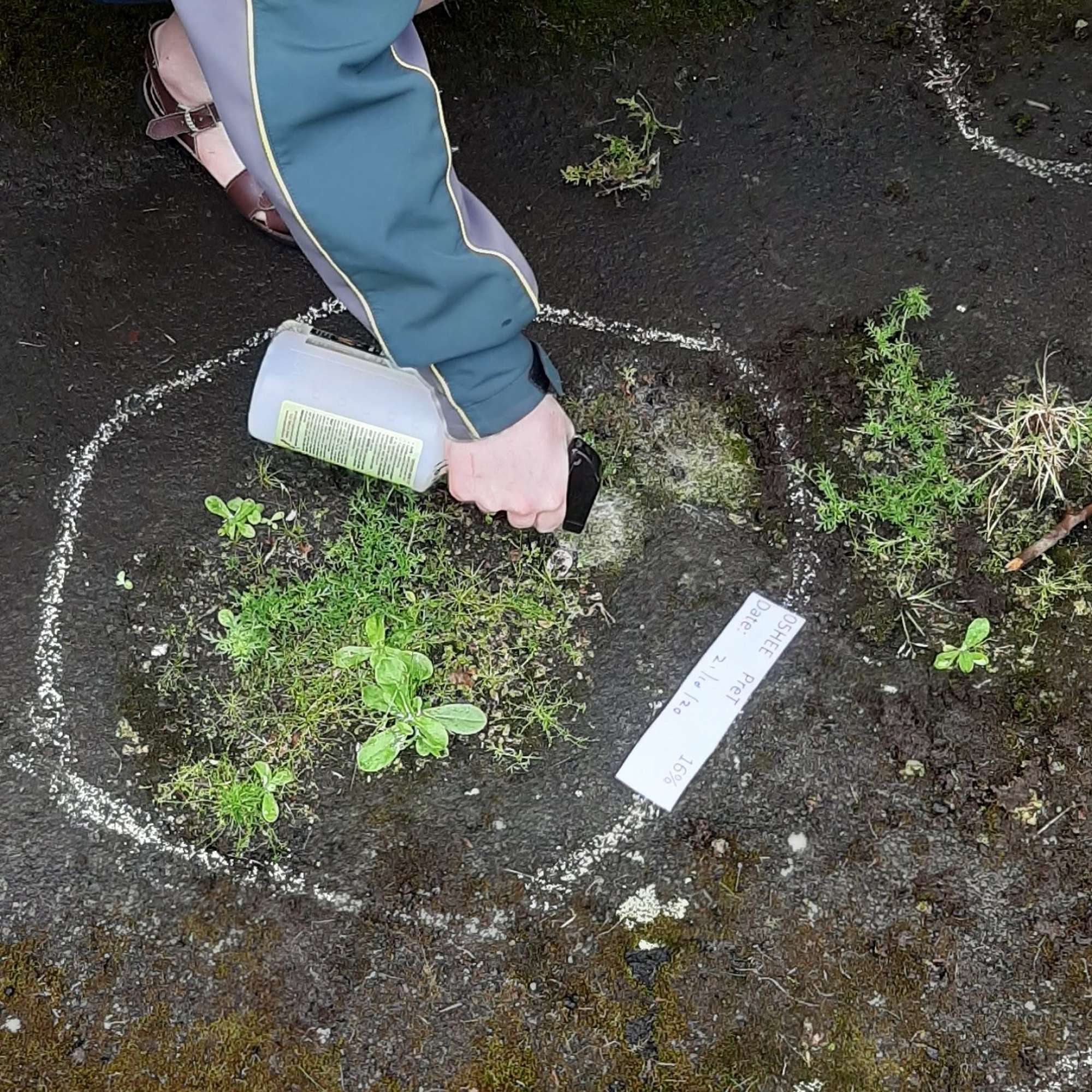 The Year 10 science classes have been undertaking a trial using acetic acid, (the acid found in vinegar), as a weedkiller. They have been doing this in partnership with Toi Ohomai Polytech. Each group set up three different plots on weedy areas around the school. One was a control with no spray, one was sprayed with 9.5% acetic acid spray and one with 16% acetic acid.