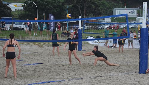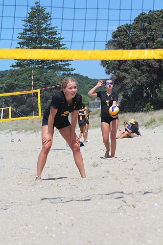 On the first weekend of the school year, Katikati College entered two teams into the NZSS Beach Volleyball Championships in Mount Maunganui. Team Gold was Meghann Fraser & Carmen Kernahan playing in 1st Division and Team Green was Indee Mackay and Leilani Rooks playing in Division 2. A fantastic weekend with hot sunny conditions, that just squeezed in, between major weather events.