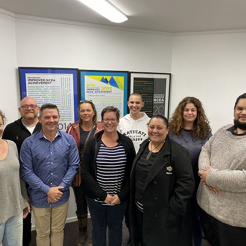 From left Lisa Corbett, Dave Freeman, Shawn Gielen, Sara Elliott-Warren, Bobbette Tanner, Sofia House, Valarie Uilou, Wendy A'Bear, Shaan Kingi. Absent Louise Buckley