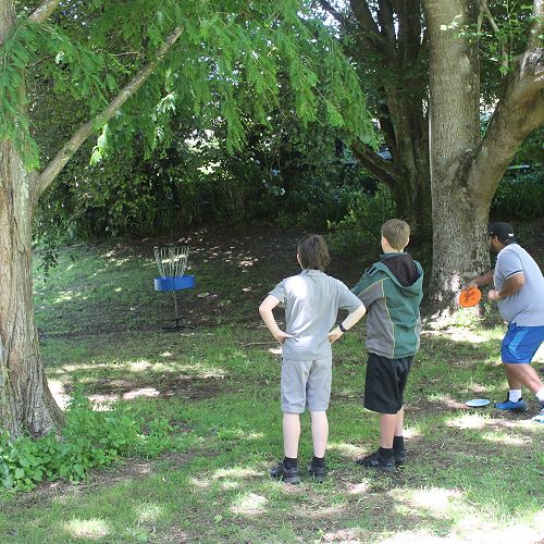 Visit this articleDisc golf is a flying disc sport in which players throw a disc (‘frisbee’) at a target.