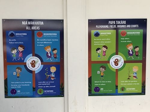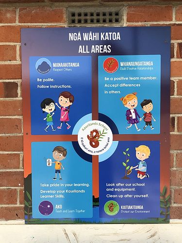 Next time you are out in the school playground make sure you check out these signs to learn more about our school values and how we behave at Kaurilands School.