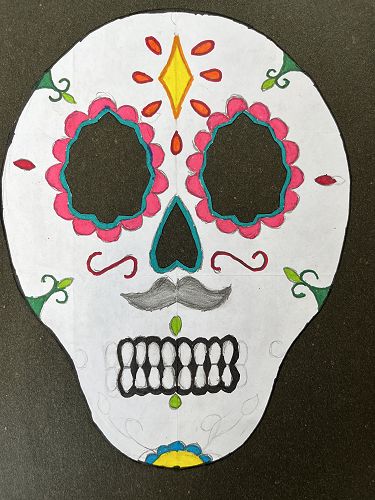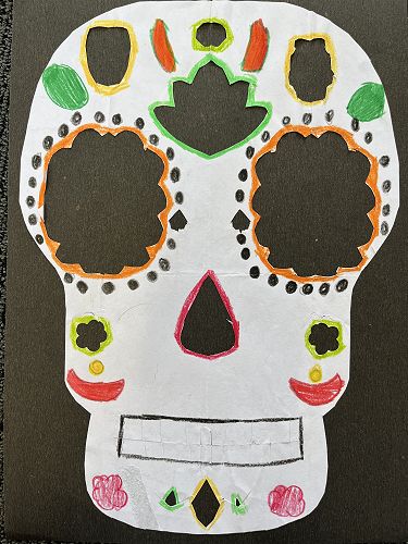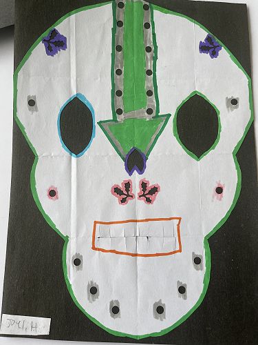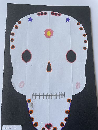 In Room 2a we have been learning about a Mexican celebration called 'El Dia de los Muertos' or Day of the Dead. This is a really interesting celebration where people remember their loved ones who have passed. The festival is full of flowers, food and colour. We researched and wrote stories about the festival. We learned about calacas or skulls, which are an important part of the celebration. We created our own calacas for art and explored lines of symmetry.