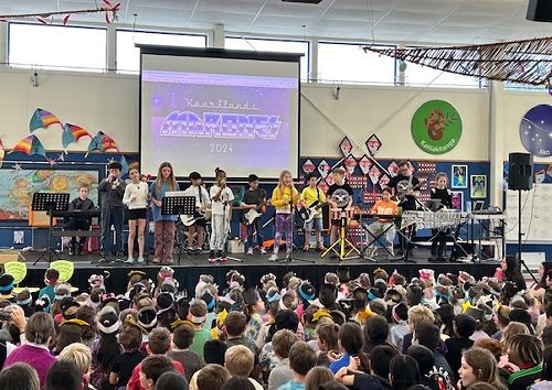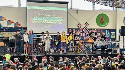 After two terms of hard work, Kaurilands’ very own mighty Marones played their first gig of the year at our mid-term assembly. Kicking out the jams with a Blondie tune and a track by The Hives from Sweden, the crowd were whipped into a rock and roll frenzy!