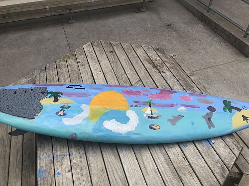How lucky are our students - the Year 5's had a marvellous day trying out surfing at Muriwai - glorious weather and scenery enjoyed by all! And the fun goes on - some of the students have been busy decorating a surfboard.