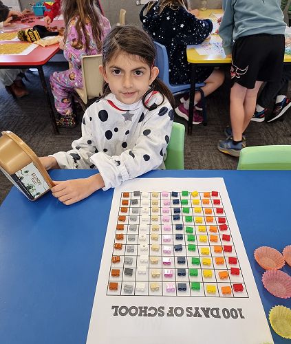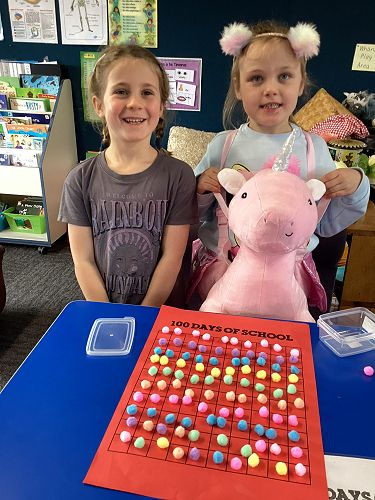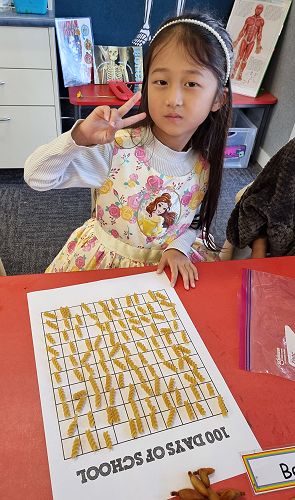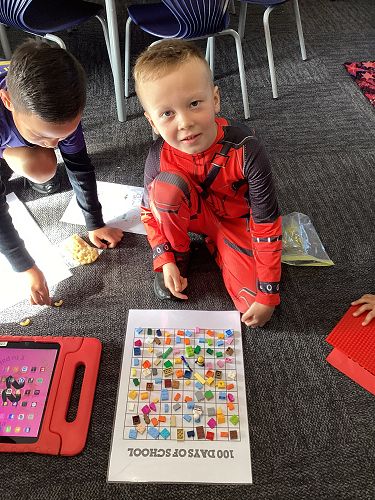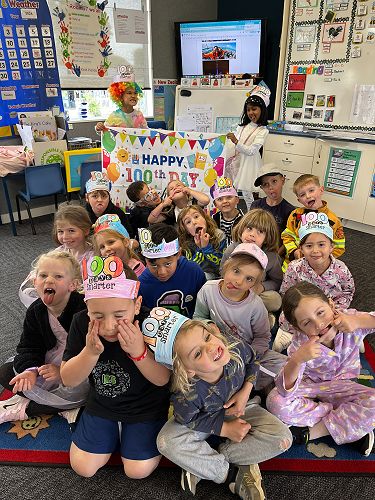 On Wednesday our Year 1 and Year 2 classes celebrated their 100th day at school for the year. They dressed up, had a yummy shared lunch and did lots of fun activities all about the number 100!