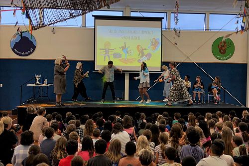 Check out the photo below when Mr V and Georgia had the coloured powder thrown at them when we launched this fundraiser at last week's assembly!