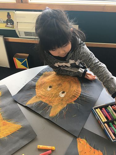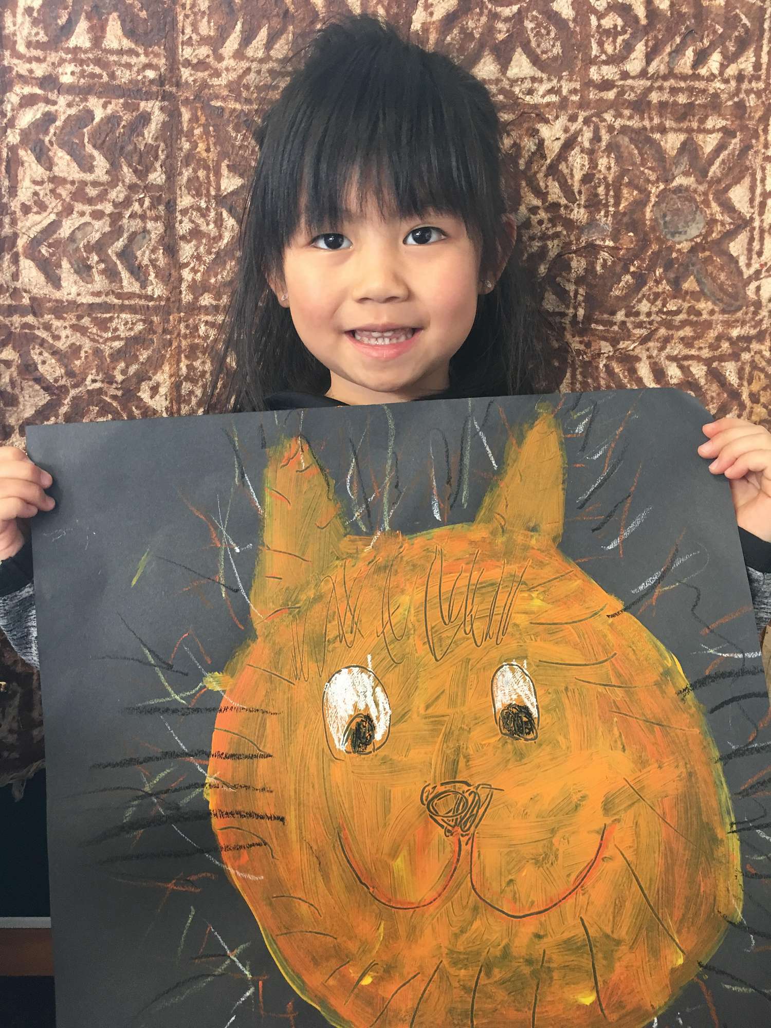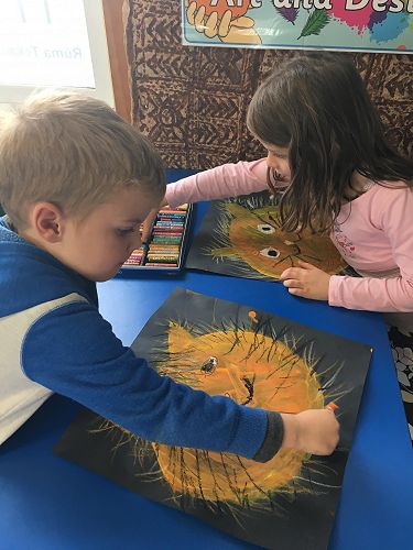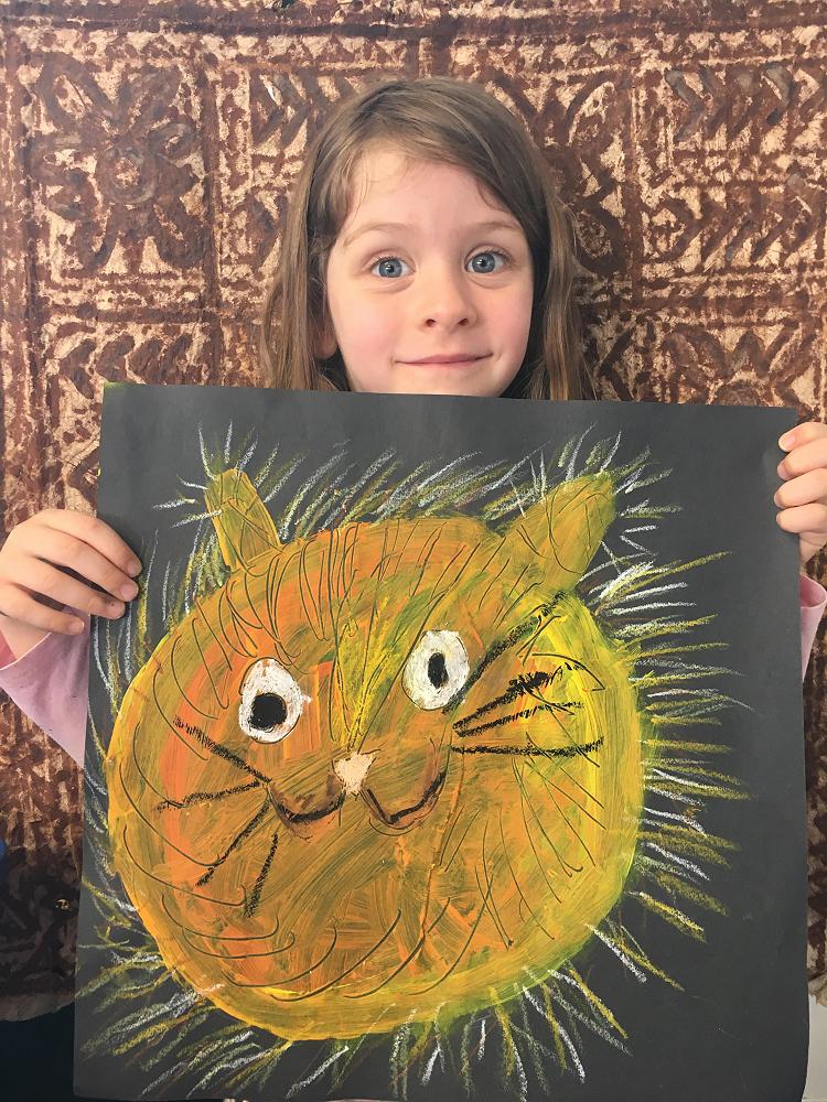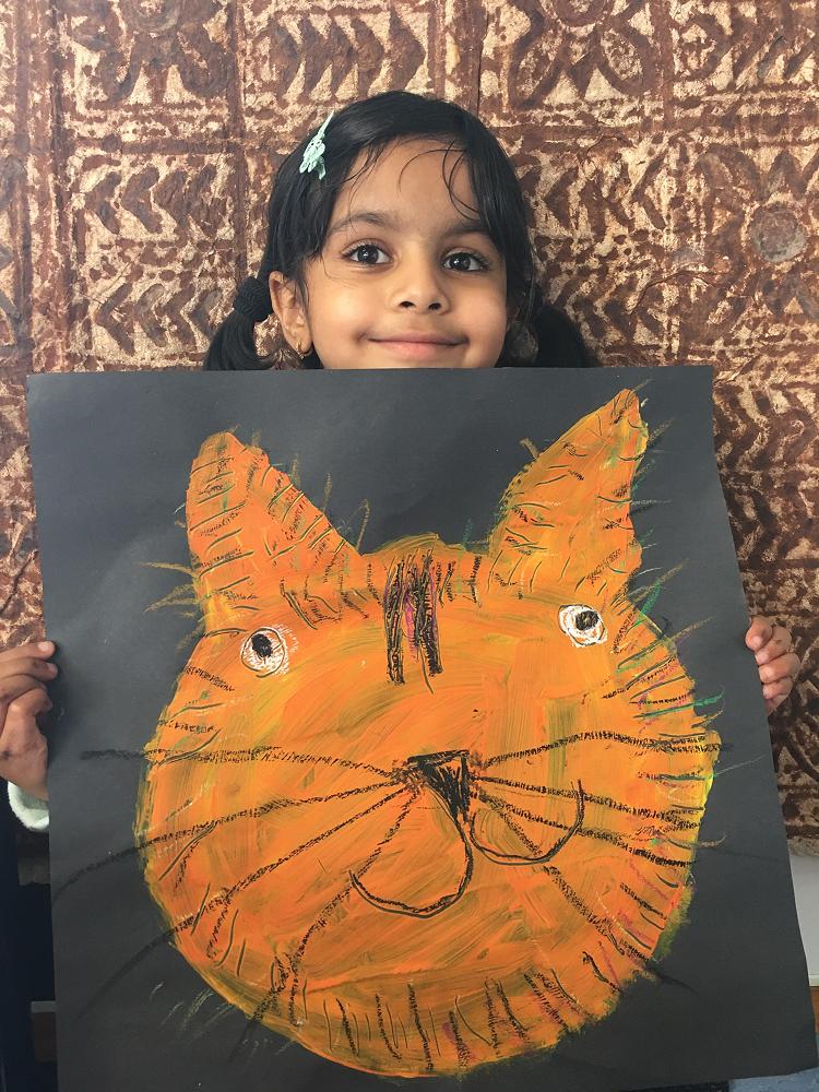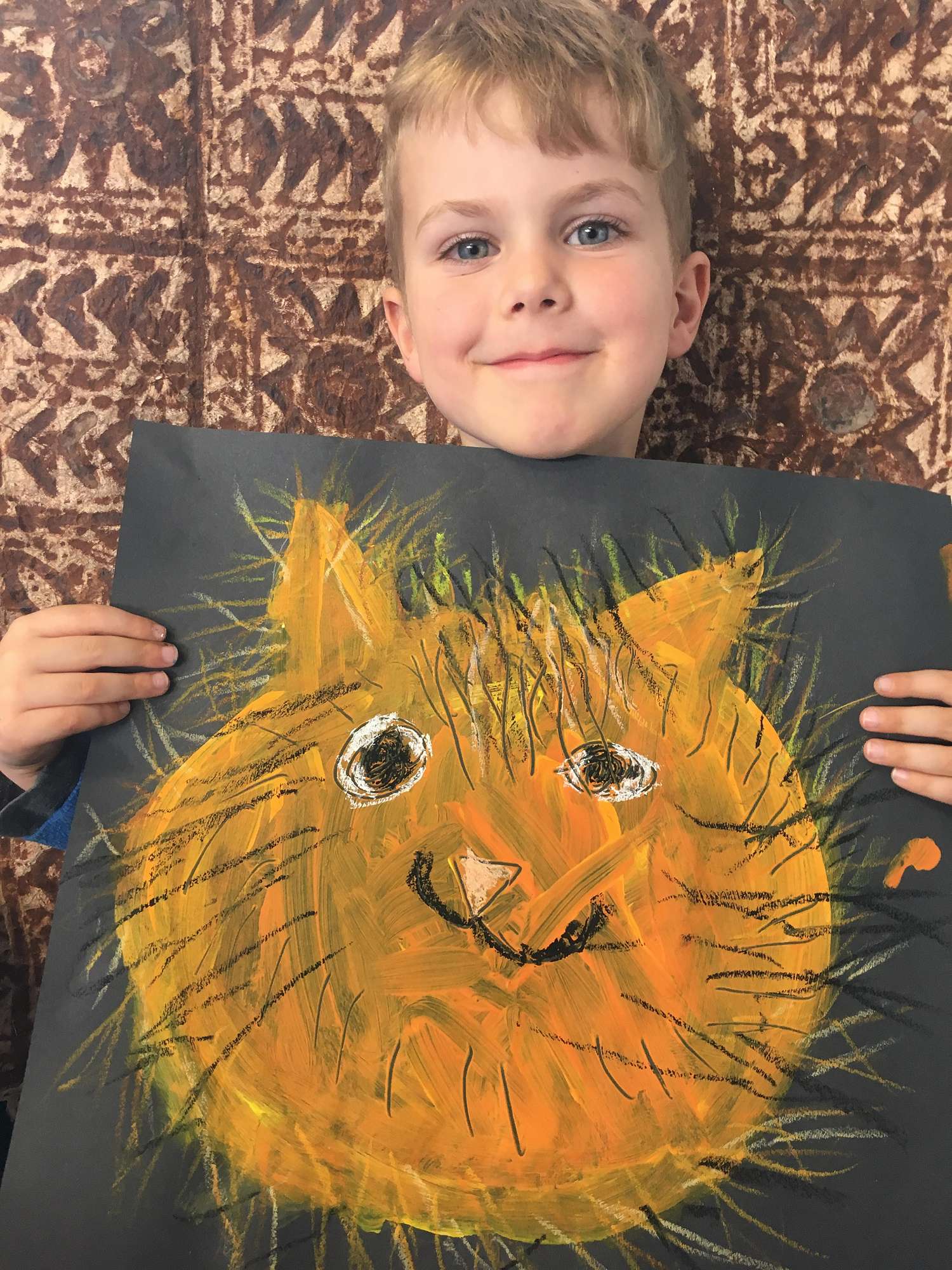 In Room 11 we love the stories about Greedy Cat, written by Joy Cowley. We created our own pictures of Greedy Cat using paint, pencil and oil pastel. We used lots of lovely whiskery marks to make our cats look fluffy and cuddly - just like the real Greedy Cat!