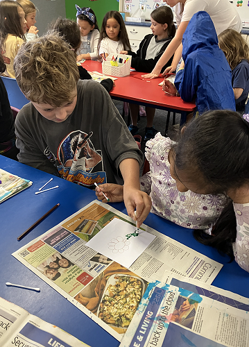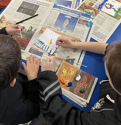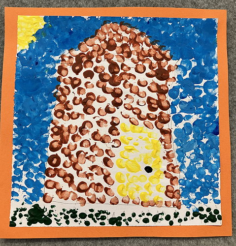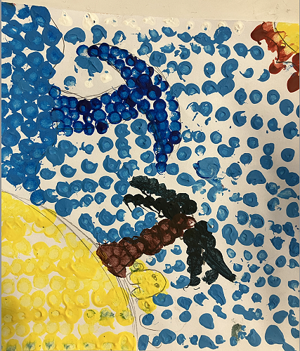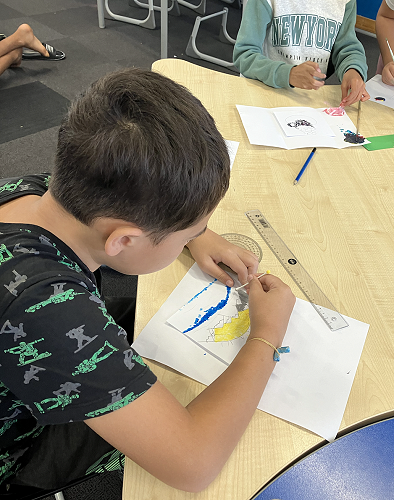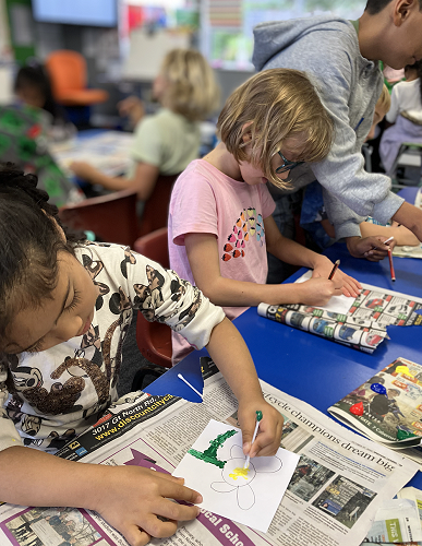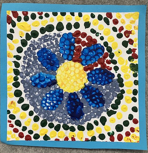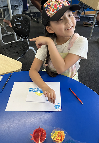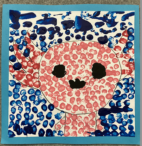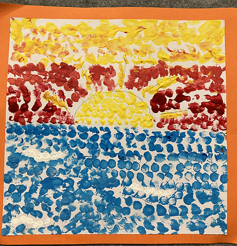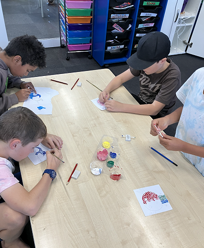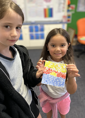 Rūma Rima read a journal article about a local artist, Pusi Urale. We love the way she uses bright, bold colours and enjoyed reading about her positive outlook on life. We were inspired to do some pointillism art like her and we even taught our buddy class how to paint like her too!