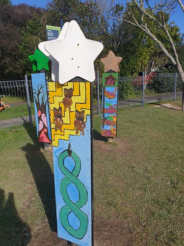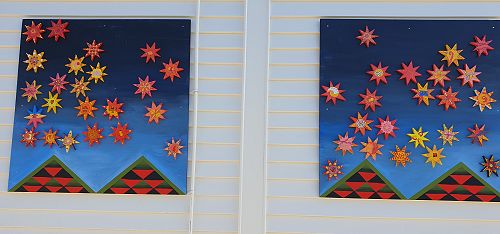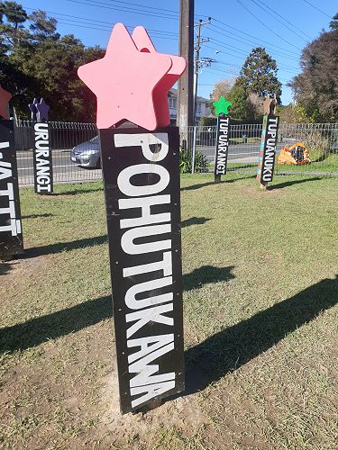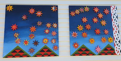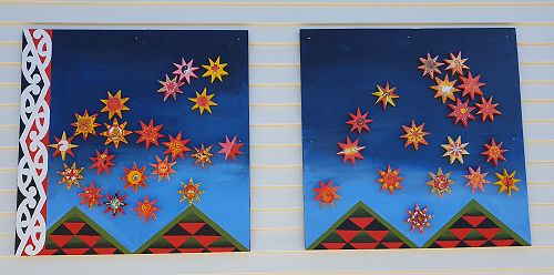 Our Year 6 Art installation was themed around Matariki and cultural identity. Each student researched and designed patterns which reflected their own cultural heritage. They each painted a Matariki star with these patterns. The installation reflects the multicultural diversity of Kaurilands School. Students also worked collaboratively to create the panels which illustrate the Matariki stars and what they represent.