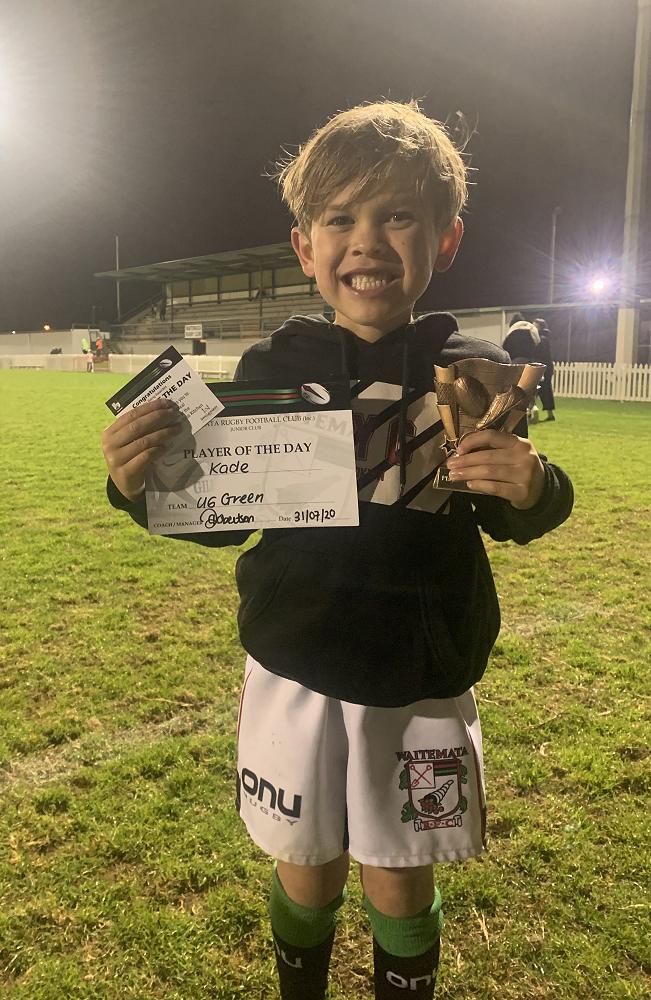 Kade (Karson's brother) received Player of the Day for his U6 Waitemata team. It was a night game in the rain but that didnβt stope Kade playing his best. Go Kadeππ