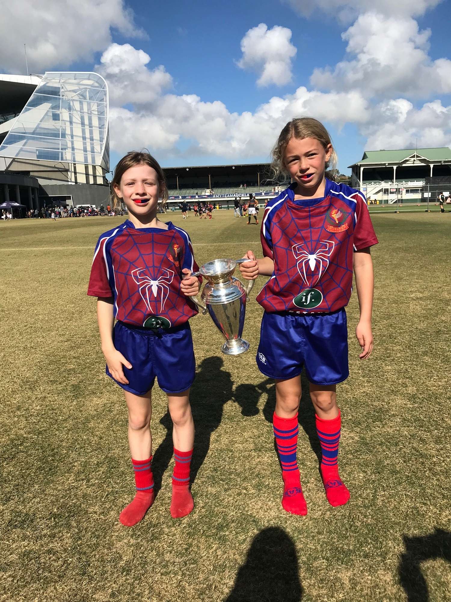 Here they are holding up the NZ Womens Sevens Team Trophy
