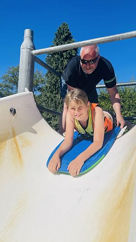 The children and parents worked tirelessly to perfect their hydroslide techniques to try and beat my record. Some got close but the title still sits with me! (see the video for evidence- my other attempts were further).