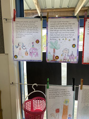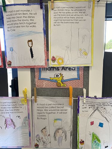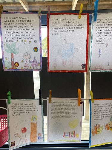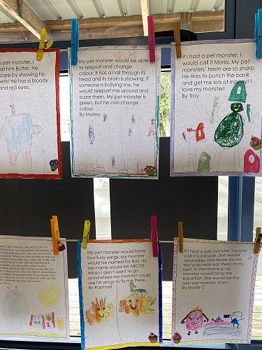 "If I had a pet monster I would call him Spikey. He will do everything for me. He will help me do the dishes for my Mum and me. He will do my homework. He has shiny spikes." By Cody
