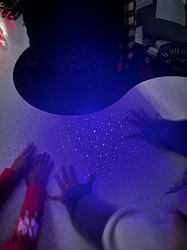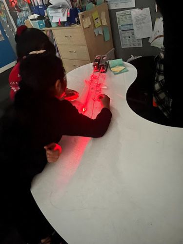 We were embarking on our new Inquiry into light. There were displays of laser lights bouncing off mirrors and being split by prisms. The smoke enabled us to see the laser lights clearly.
