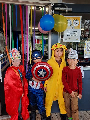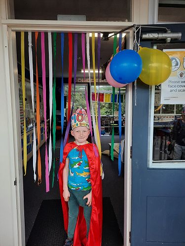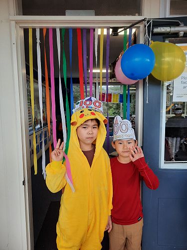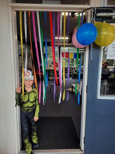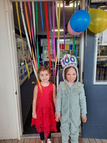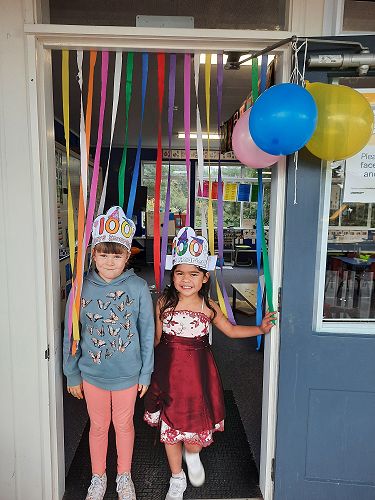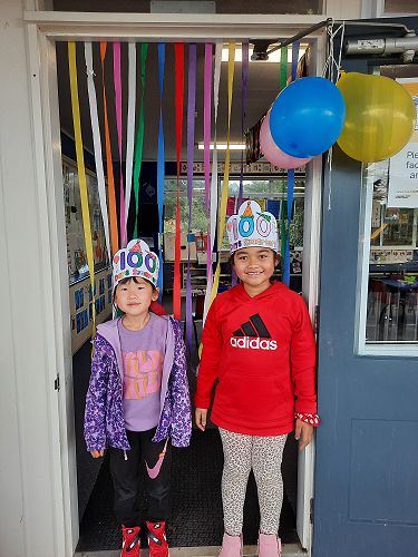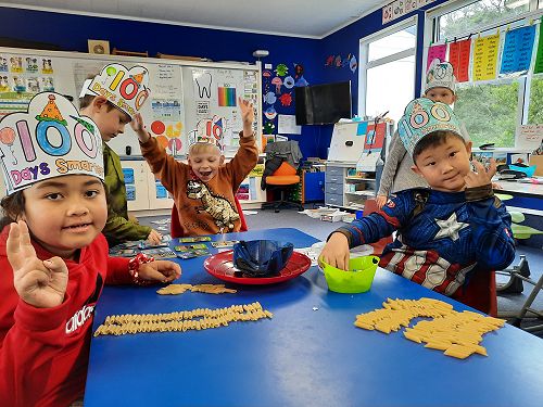On a bright exciting Friday it was Room 21's 100th day. First we made crowns that said 100 days smarter. Next we counted our 100 items and I brought 100 top trump cards. Then I had delicious food. My favourite was the dunkin' doughnuts. Finally it was game time. We played musical statues and fruit salad. I love 100 day parties!
