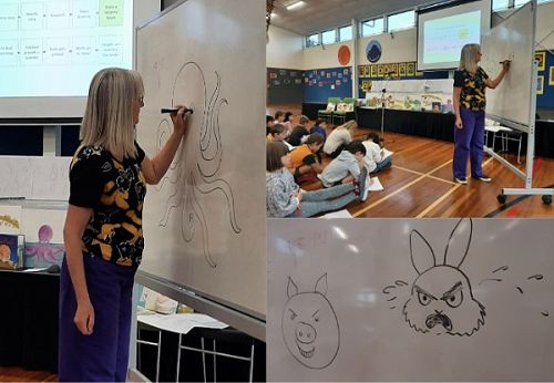 We have had a super busy week this week celebrating all things books in Room 24! We were very lucky to have a visit from author and illustrator, Stephanie Thatcher. She spoke with the cohort about some of her books, her process and taught us all a few tips and tricks to improve our own illustrations. What an amazing privilege.