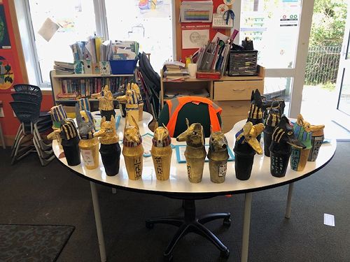 Year 6 finished off their Term 4 Inquiry about Ancient Egypt by creating Kaurilands Museum. The museum had its grand opening on Tuesday afternoon and whānau, friends and other students were all welcome to visit.