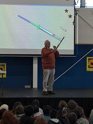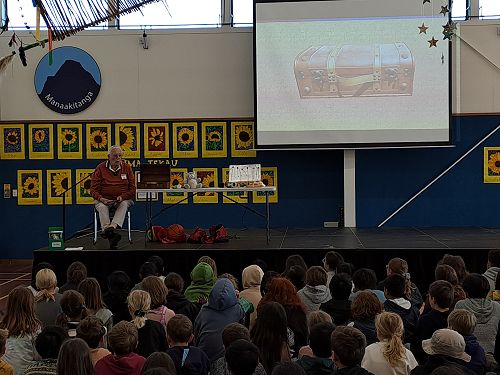 This week we were fortunate to have a visit from New Zealand children's writer Des Hunt as part of the nation-wide Storylines tour. Des spoke to our Year 4, 5 and 6 tamariki. What a wonderful visit! Des spoke about how be became a writer and entertained us all with his science experiments.