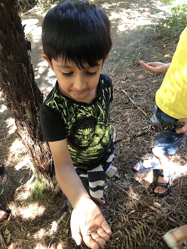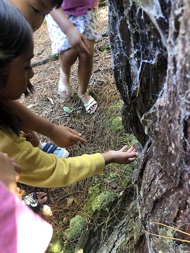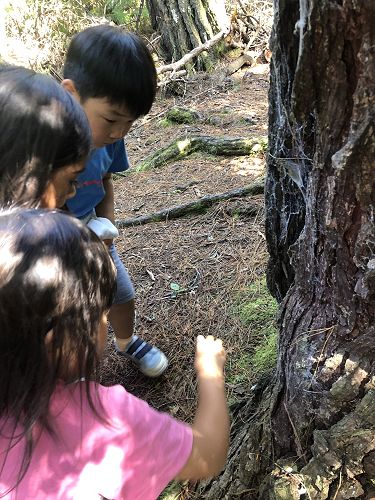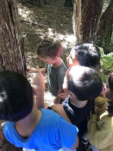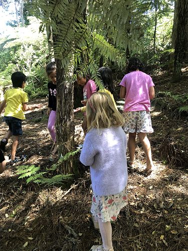 We read a poem about cicadas, then a book (Searching for Cicadas by Lesley Gibbes), and then we had our own cicada shell hunt in our kura's bush.