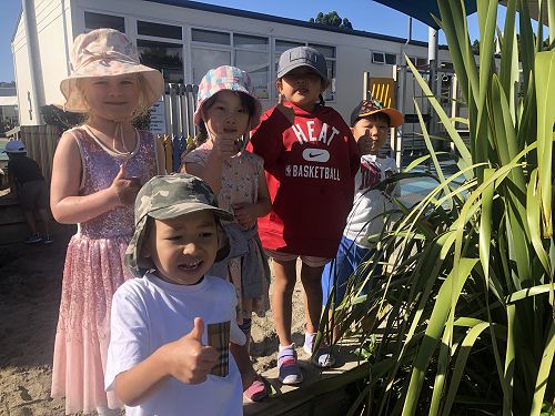 The next day during developmental time we spotted a live cicada on the harakeke (flax bush) by the sandpit.
