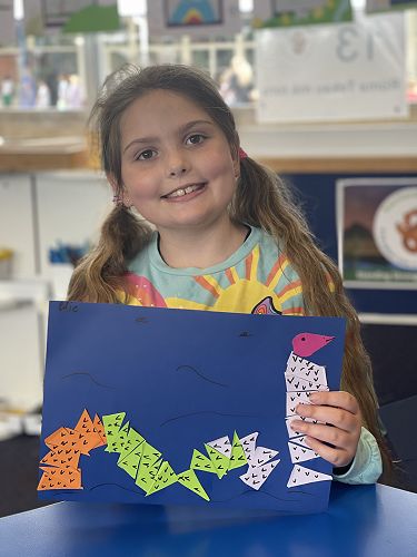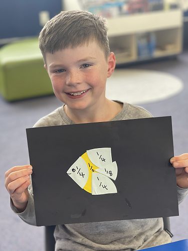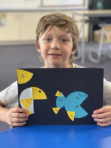 In Room 13 we have been learning about fractions. We looked at the book 'Picture Pie' by Ed Emberley and learnt how to fold and cut basic circles and shapes into fraction pieces. We then used those fraction pieces to create all sorts of different creatures!