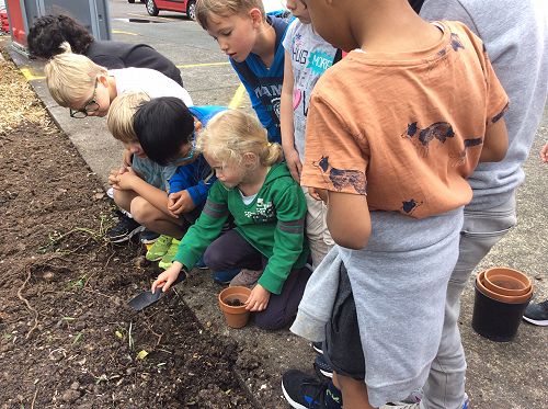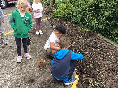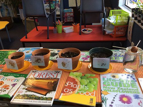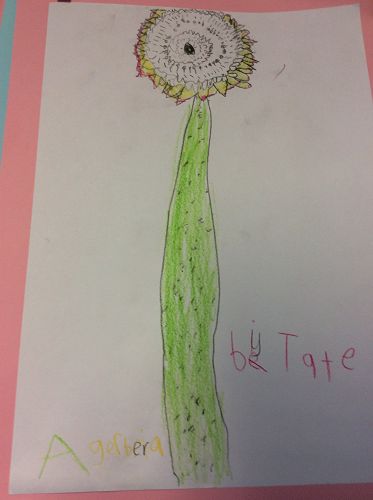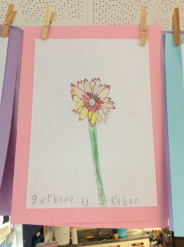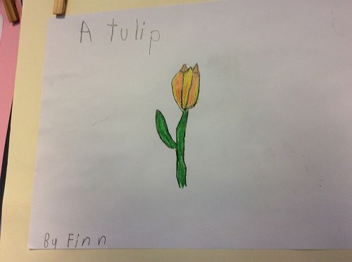 In Week 1 Rūma 14 were surprised to find an envelope waiting for us after lunch one day. It was a letter from Jack, of beanstalk fame, who’d heard we were growing beanstalks in class after reading about his adventures. He gave us five different types of seeds to grow and we had to guess which plant the seeds would yield. We wrote Jack letters to thank him and tell him what we know about planting and growing. As part of our Planting and Growing Inquiry we have also sketched flowers (irises, gerberas and tulips), made a giant floral mural from egg cartons and yesterday we put some cress seeds in cotton wool to test whether plants need soil to grow.