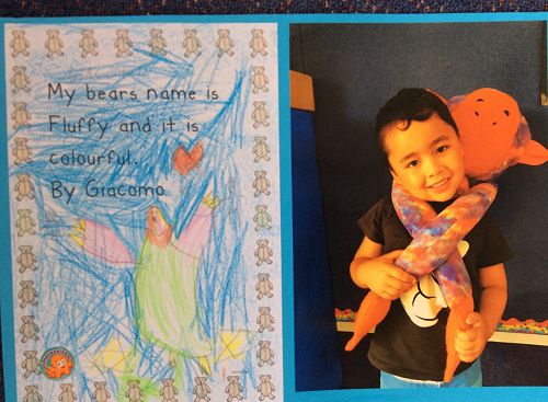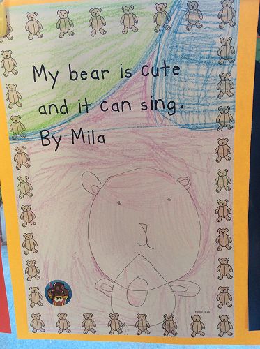 Room 18 brought their teddies into school and wrote stories about them. We used describing words like soft, cuddly, furry and fuzzy. We also had a picnic with our teddies and ate our lunches together under the magnolia tree. Here are some pics of us with our teddies and some of our awesome stories.