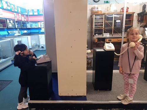 Room 20 explored the Aviation Museum and played with pulleys, levers, cogs and wheels in the classroom. We spun the giant hamster wheel by running as fast as we could and we called each other up on telephones from eons ago.